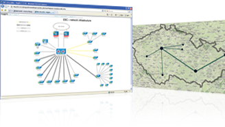 Nejrozšířenější vizualizace, která zobrazuje mapu IT infrastruktury. Zobrazení může být jak ve statické podobě, tak i v podobě dynamicky generovaného schématu.