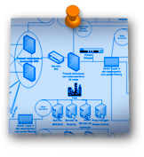 Nejrozšířenější vizualizace, která zobrazuje mapu IT infrastruktury. Zobrazení může být jak ve statické podobě, tak i v podobě dynamicky generovaného schématu.